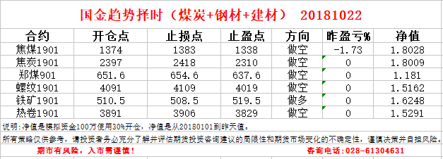 国金趋势择时20181022